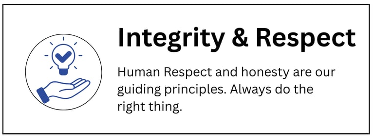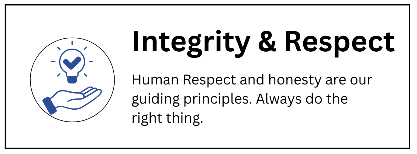 Human Respect and honesty are our guiding principles. Always do the right thing.