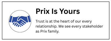 Trust is at the heart of our every relationship. We see every stakeholder as Prix family.